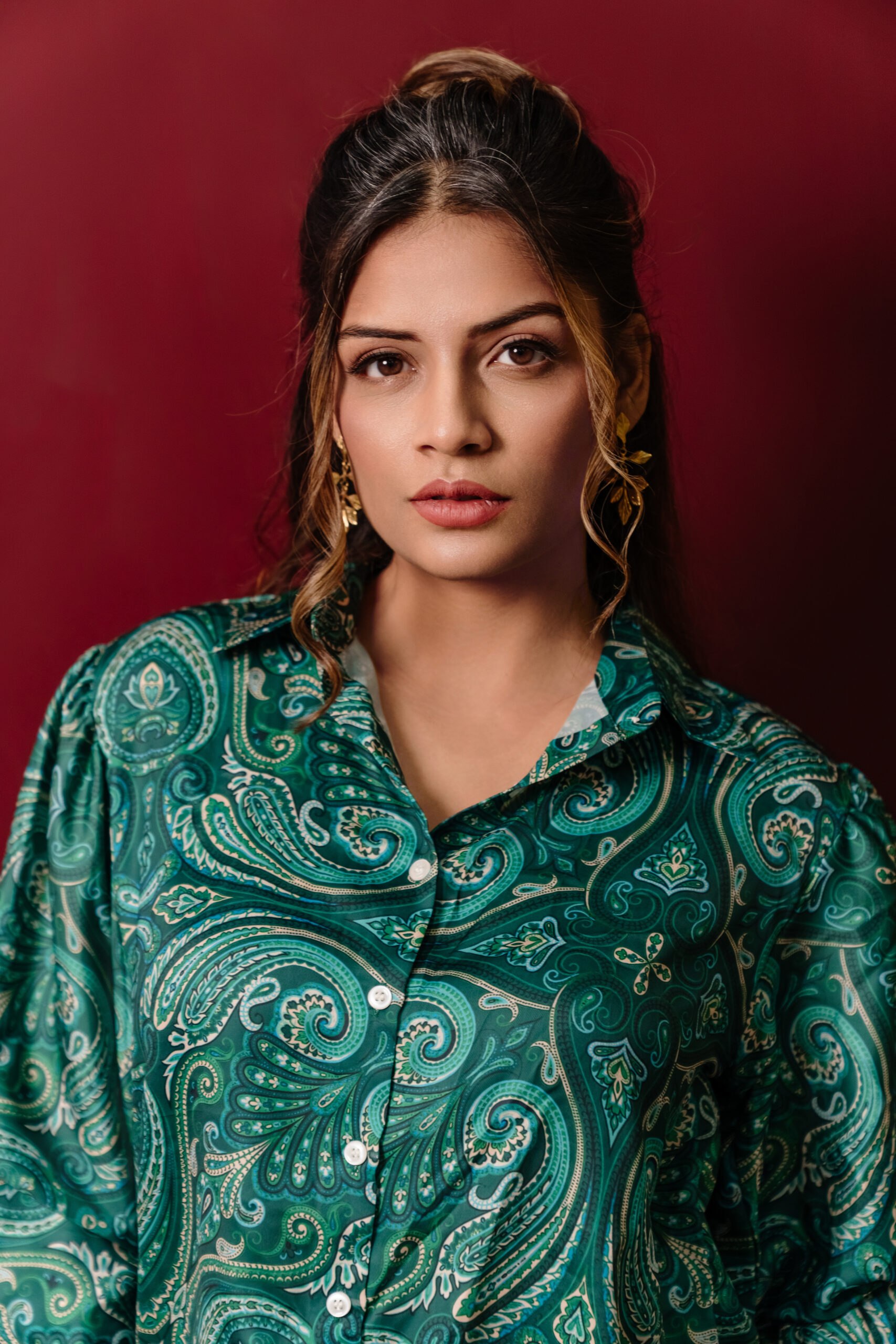 A vibrant emerald green shirt adorned with an intricate paisley print. Designed with a relaxed fit and classic collar, this piece brings a bold yet polished touch to your everyday wardrobe.